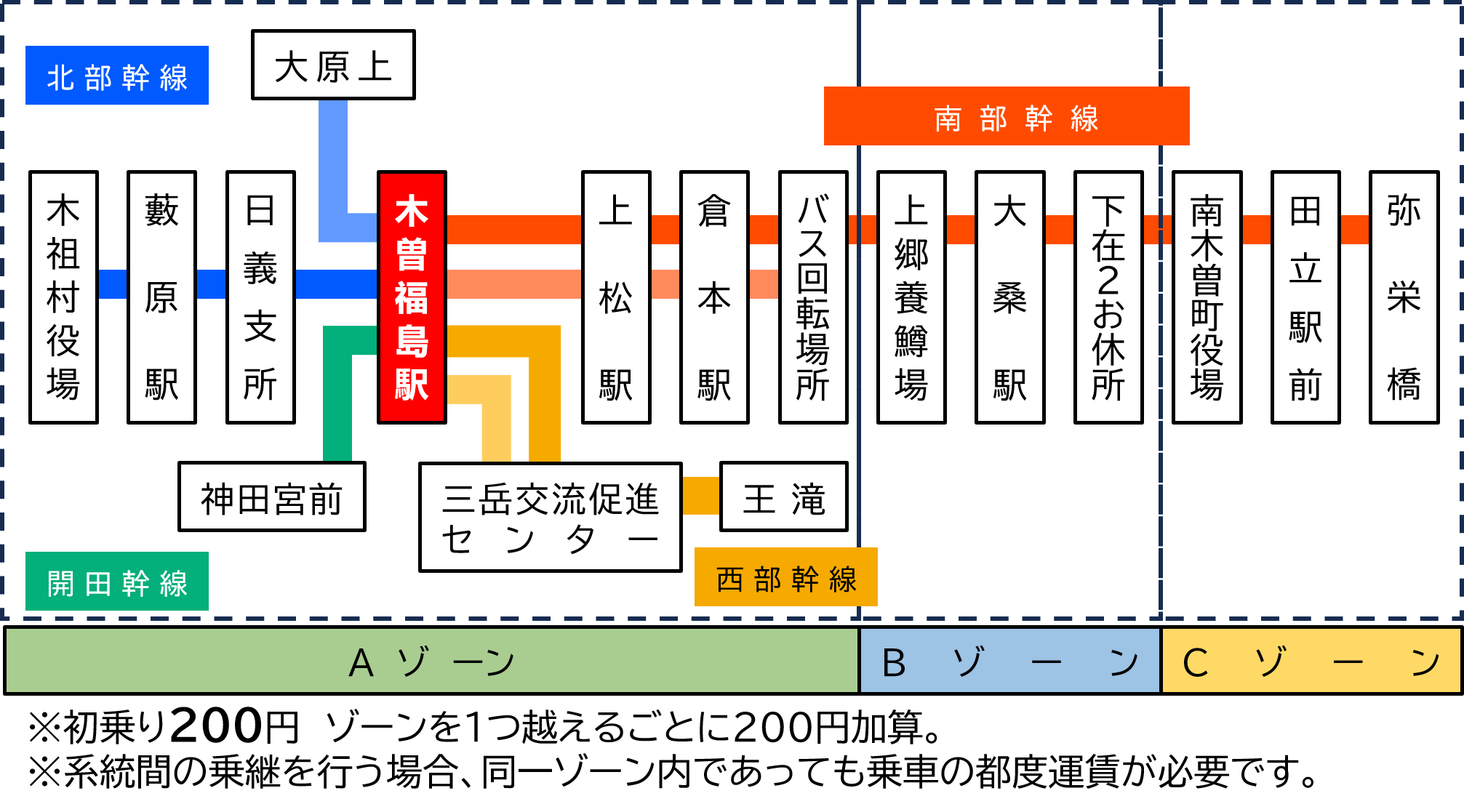 「きそバス」路線図・時刻表 ※令和7年10月から